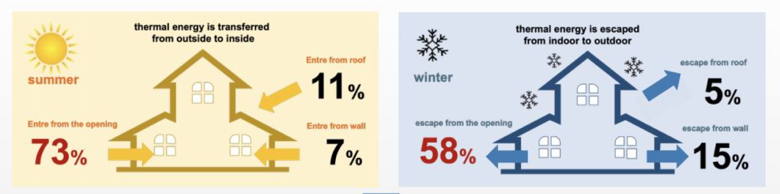 建築「開口玻璃門窗」是 "熱源" 進出最多的地方
