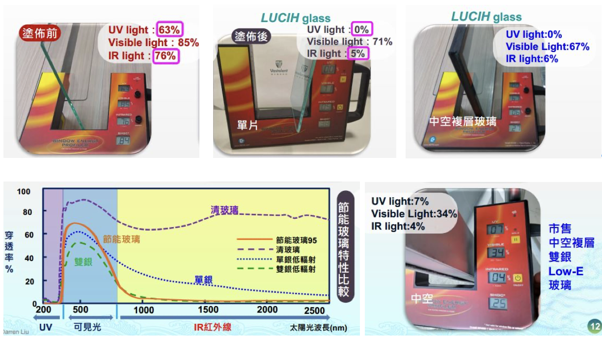•  熱效應:紅外線可穿透玻璃並增加室內或車內溫度,導致空調能耗增加,影響能源效率。